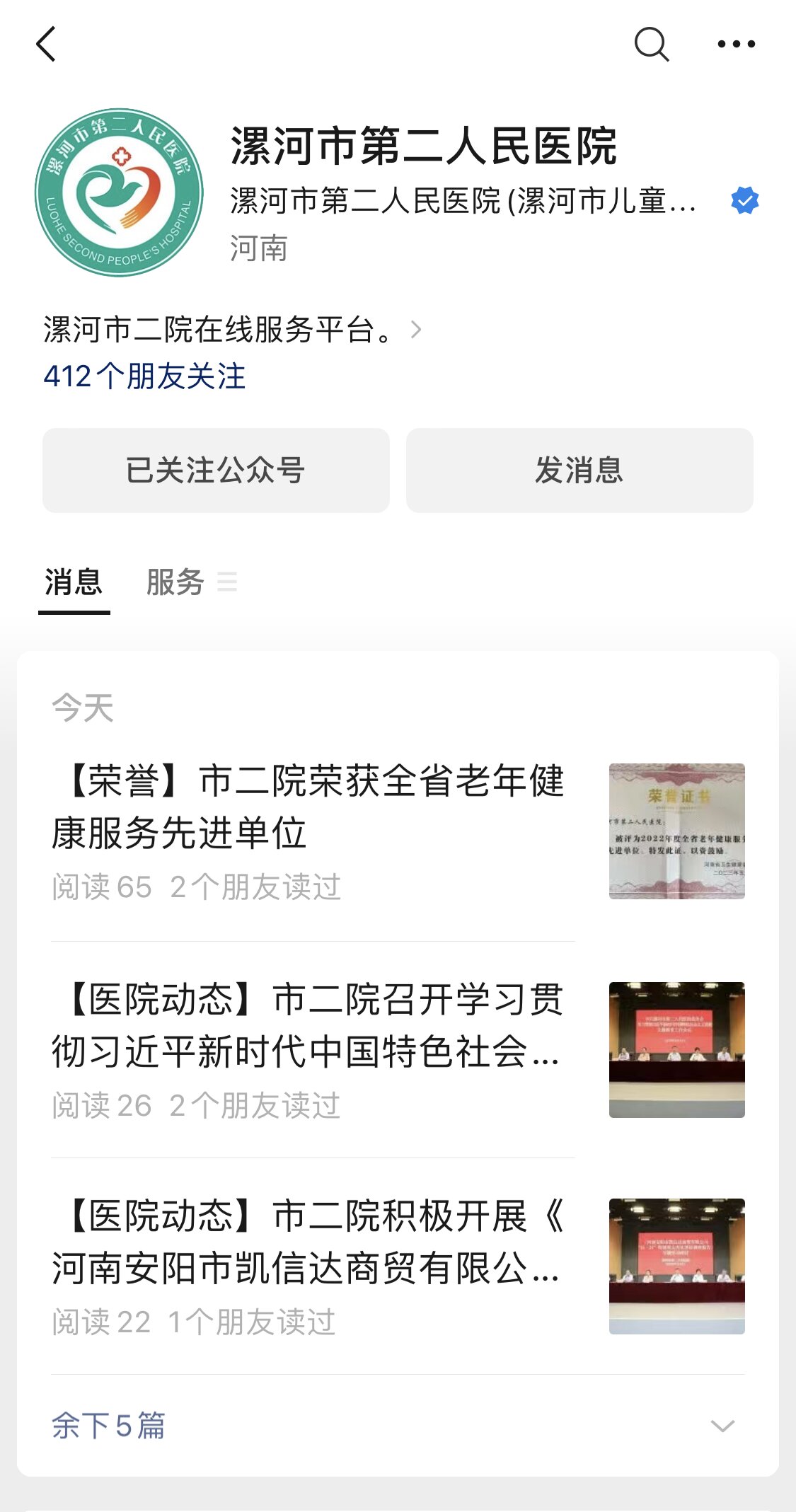 01.關注“漯河市第二人民醫(yī)院”公眾號