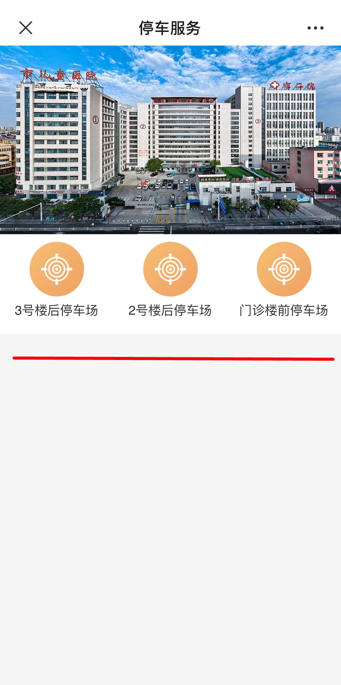 03.分別點擊“門診樓前停車場”、“2號樓后停車場”、“3號樓后停車場”三個模塊,這樣就可以提前了解實時停車位狀況啦!
