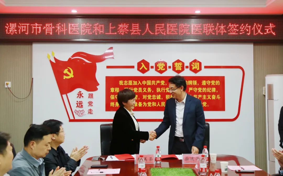 上蔡縣人民醫(yī)院黨委書記魏美榮對漯河市骨科醫(yī)院一行的到來表示熱烈歡迎,她說,漯河市骨科醫(yī)院與上蔡縣人民醫(yī)院簽訂醫(yī)聯(lián)體合作協(xié)議必將進(jìn)一步促進(jìn)本院內(nèi)涵建設(shè),不斷提高醫(yī)院醫(yī)療質(zhì)量,增強(qiáng)科研能力。衷心希望雙方今后能夠加強(qiáng)交流、相互促進(jìn)、共同發(fā)展,為發(fā)展醫(yī)療衛(wèi)生事業(yè)、保護(hù)人民健康作出更大的貢獻(xiàn)。