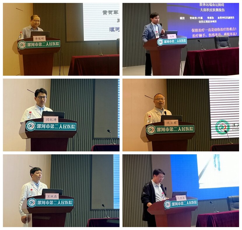 在學(xué)術(shù)交流環(huán)節(jié),市二院顯微手足外科主任沈衛(wèi)軍就“損傷嚴(yán)重的離斷肢體再植還是截肢”,漯河醫(yī)專二附院顯微外科李俊明主任就“改良大多角骨切除關(guān)節(jié)成形治療3、4期拇指腕掌關(guān)節(jié)炎”,漯河醫(yī)專二附院顯微外科王偉就“基于骨整形理念聯(lián)合llizarov技術(shù)治療脛骨骨髓炎合并皮膚軟組織缺損”,漯河市第二人民醫(yī)院顯微外科王戰(zhàn)磊就“甲溝炎的診治”,漯河醫(yī)專二附院顯微外科代彭偉就“跟腱缺損并跟后區(qū)皮膚軟組織缺損的修復(fù)”,漯河市第二人民醫(yī)院顯微外科閆紀(jì)濤就“修復(fù)先天性多指的規(guī)范化診療”進(jìn)行了專題講座及分享交流。
