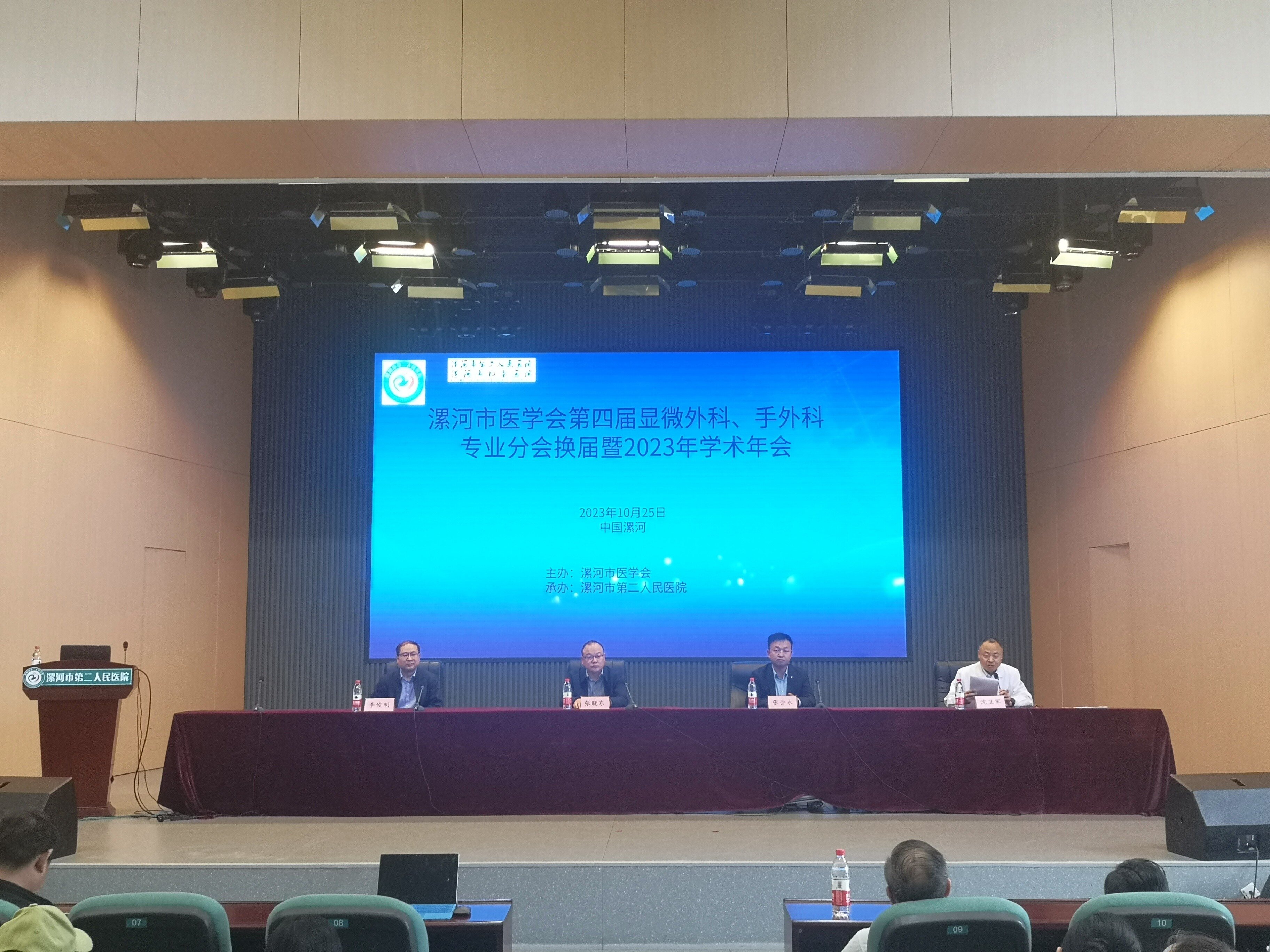 10月25日,由市醫(yī)學(xué)會主辦、漯河市第二人民醫(yī)院承辦的漯河市醫(yī)學(xué)會第四屆顯微外科、手外科分會換屆暨2023年學(xué)術(shù)會議在市二院2號樓十二樓學(xué)術(shù)報告廳舉行。市二院副院長張曉東、市醫(yī)專二附院顯微外科主任李俊明教授及全市各級醫(yī)院400多名醫(yī)護(hù)人員參加了會議。會議由漯河市醫(yī)學(xué)會顯微外科、手外科主任委員,市二院顯微外科主任沈衛(wèi)軍主持。