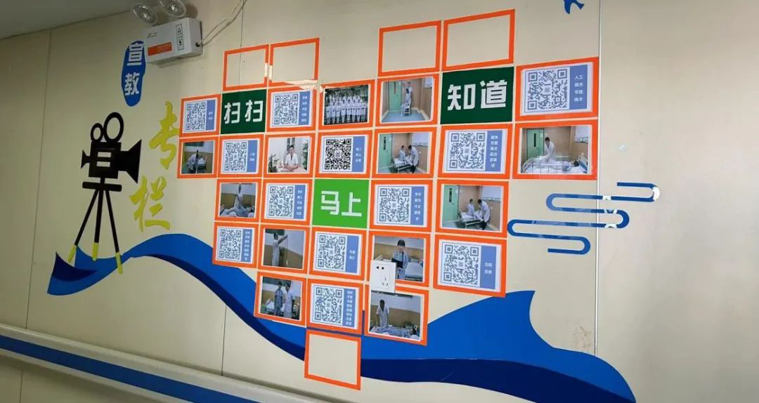 走進(jìn)骨二科(創(chuàng)傷骨科、骨腫瘤),映入眼簾的就是獨(dú)具特色的健康宣教二維碼墻,這是科室優(yōu)質(zhì)護(hù)理服務(wù)工作的一道靚麗的風(fēng)景線,也是提升患者就醫(yī)體驗(yàn)的重要舉措。從入院宣教到圍術(shù)期健康指導(dǎo)、術(shù)后康復(fù)鍛煉再到出院宣教……每一個(gè)場景設(shè)計(jì)、每一個(gè)動(dòng)作要領(lǐng)都是骨二科(創(chuàng)傷骨科、骨腫瘤)醫(yī)護(hù)人員結(jié)合工作實(shí)際,本色出演,通過自學(xué)制作科普視頻,并上傳至網(wǎng)絡(luò)生成二維碼來供患者觀看。為方便患者操作,科室特意設(shè)計(jì)并制作宣傳文化墻,將二維碼放置在文化墻上,患者只要掃一掃即可找到自己需要獲取的健康知識(shí)。體現(xiàn)了健康教育實(shí)時(shí)性、??菩?、個(gè)性化的特點(diǎn),患者不僅從中學(xué)習(xí)健康知識(shí),更提高遵醫(yī)行為的意識(shí),提升了治療的依從性和滿意度。