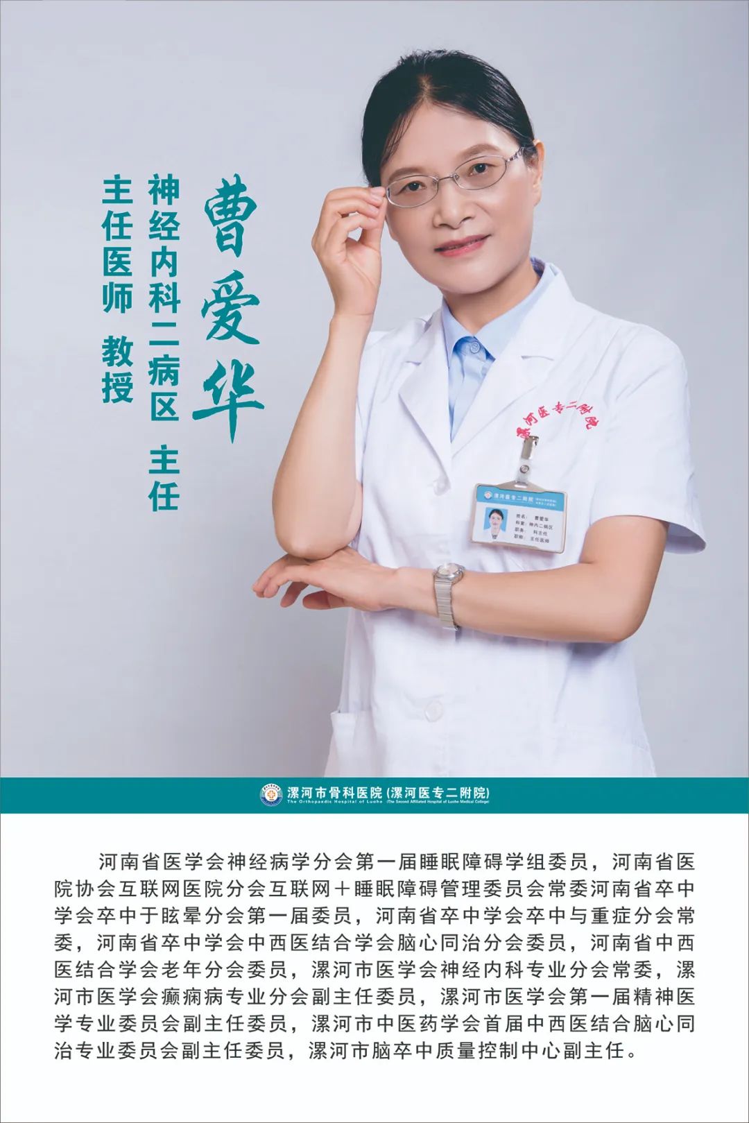 骨醫(yī)名家|漯河市骨科醫(yī)院神經(jīng)內(nèi)科二病區(qū)主任 曹愛(ài)華教授