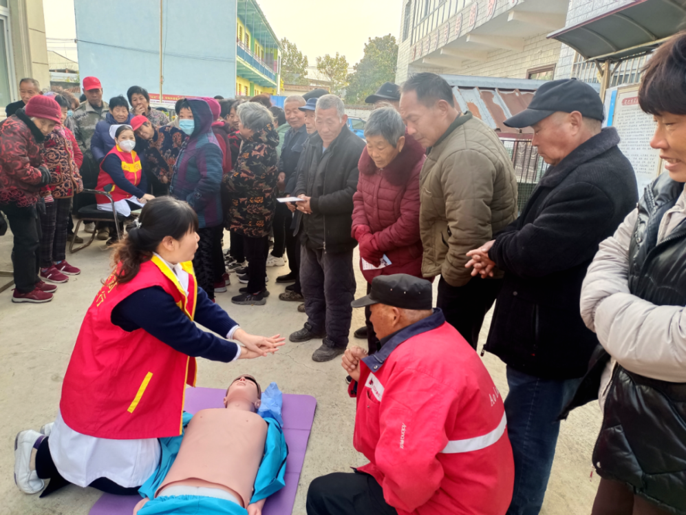當(dāng)天早上七時(shí)十分,來自該院內(nèi)科、外科、骨科、急診科、兒科、社工部等專業(yè)的醫(yī)療專家、黨員志愿者們出發(fā)來到召陵區(qū)鄧襄鎮(zhèn)尚莊村開啟大型義診活動(dòng)。義診現(xiàn)場(chǎng),共產(chǎn)黨員、肛腸科主任賈彥超,兒科主任醫(yī)師孟平英,共產(chǎn)黨員、普外科副主任醫(yī)師劉永輝,胸外科副主任醫(yī)師許海偉,心內(nèi)科主治醫(yī)師劉曉丹,骨科醫(yī)師泮學(xué)貞等專家志愿者為村民免費(fèi)測(cè)血壓、手指血糖、做心電圖、骨密度檢測(cè)、甲狀腺彩超、碳呼吸試驗(yàn)、體格檢查、疾病診斷,并為村民進(jìn)行用藥指導(dǎo)、健康咨詢,發(fā)放健康教育手冊(cè)等。此外,共產(chǎn)黨員、社工部主任韓書環(huán)現(xiàn)場(chǎng)通過人體模型向村民講解心肺復(fù)蘇的操作手法,并邀請(qǐng)觀摩的村民現(xiàn)場(chǎng)操作演練,指出心肺復(fù)蘇操作過程中需要注意的問題。
