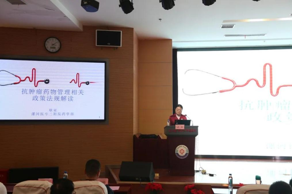 該院藥學(xué)部主任耿亞圍繞我國抗腫瘤藥物管理的歷史沿革、《新型抗腫瘤藥物臨床應(yīng)用指導(dǎo)原則》及《抗腫瘤藥物臨床應(yīng)用管理辦法》試行版要點解讀、該院抗腫瘤藥物管理情況等方面給大家作了詳細(xì)講解。她說,抗腫瘤藥物的應(yīng)用涉及臨床多個學(xué)科,合理應(yīng)用抗腫瘤藥物是提高療效、降低不良反應(yīng)發(fā)生率以及合理利用衛(wèi)生資源的關(guān)鍵。