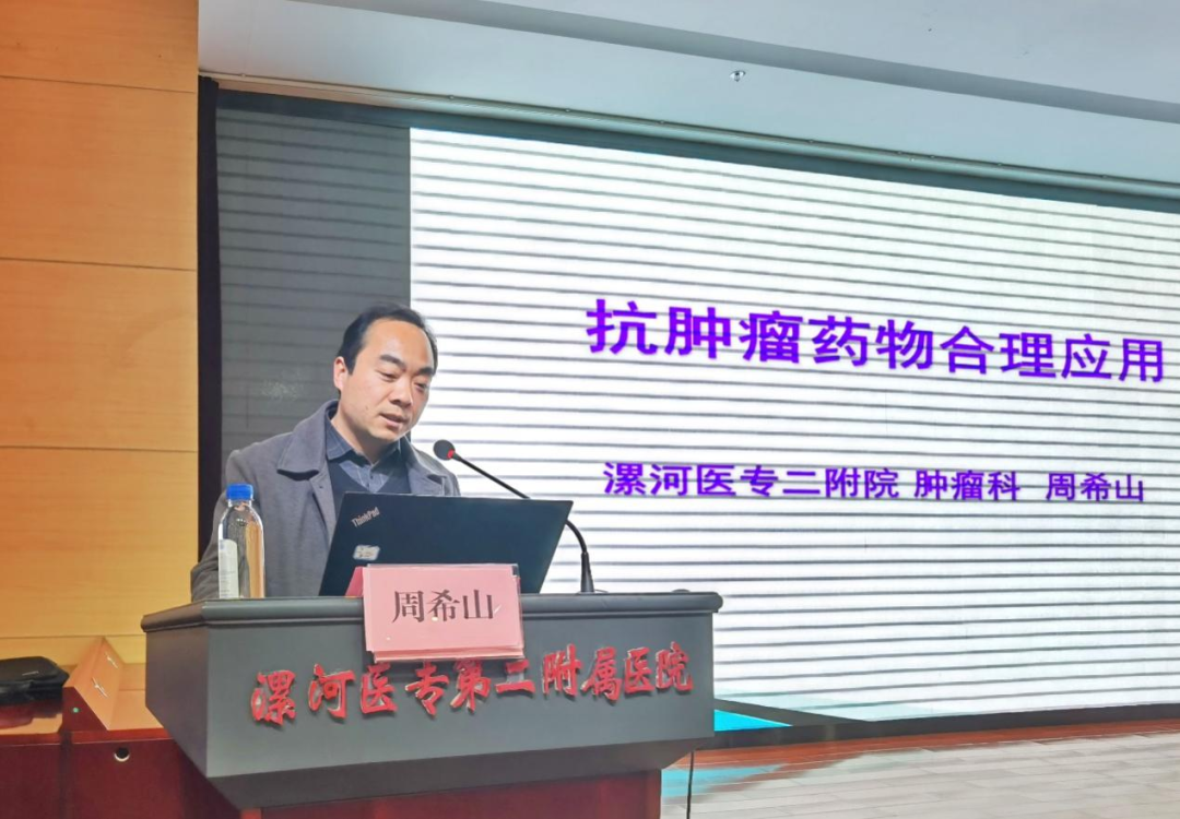 該院腫瘤血液科主任周希山主要從抗腫瘤藥物概述、循證醫(yī)學(xué)與抗腫瘤藥物應(yīng)用及癌癥鎮(zhèn)痛藥物的合理使用等方面闡述抗腫瘤藥物的臨床合理使用。通過周希山的講解,與會人員更清楚了常用抗腫瘤藥物的分類、腫瘤合理用藥的一般原則與策略,明確了抗腫瘤藥物給藥劑量、給藥途徑和給藥間隔的選擇依據(jù)。周希山也對癌痛患者疼痛治療方案的基本原則進行詳細(xì)闡述,讓大家了解到慢性疼痛治療的新理念。