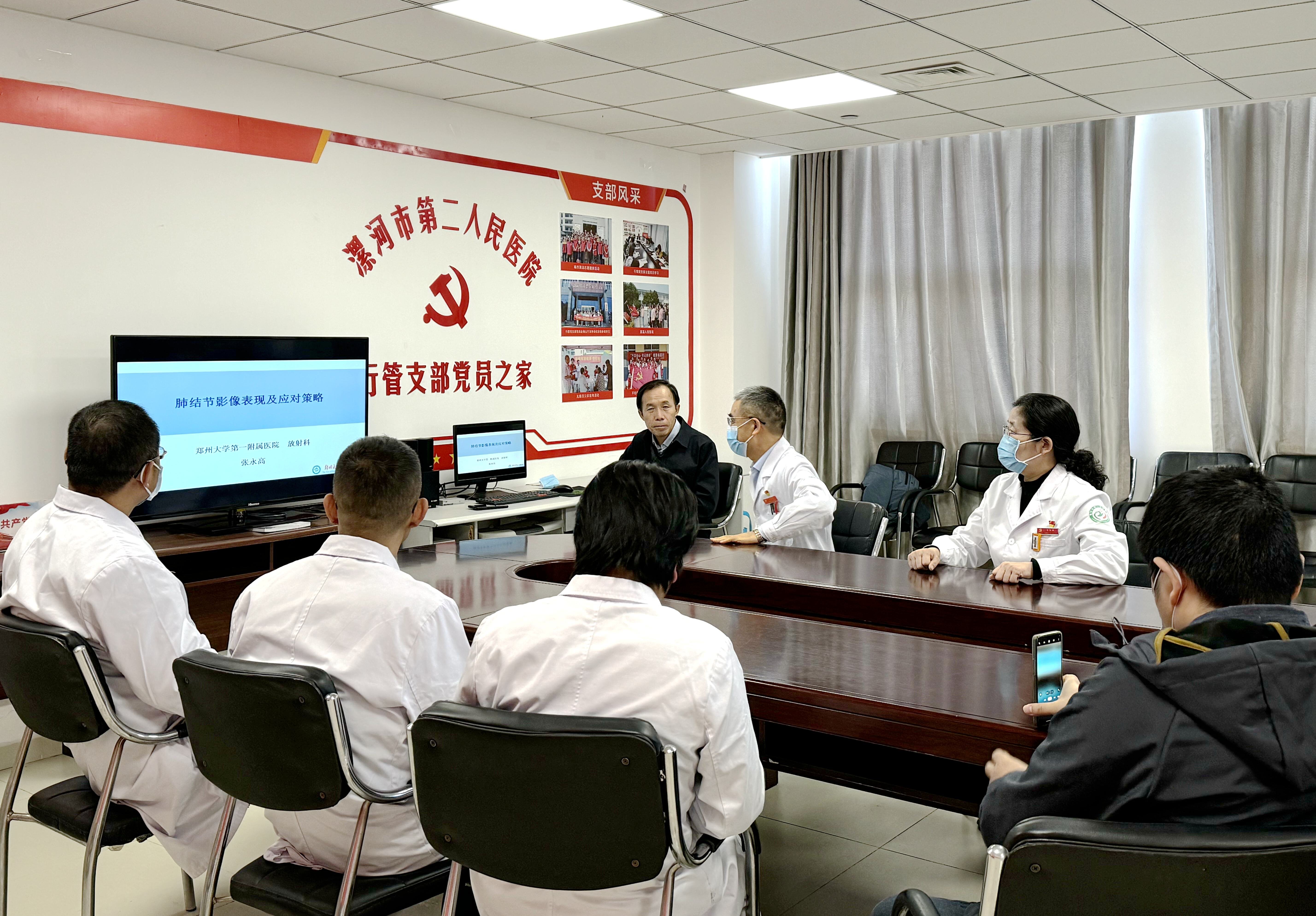 為了能給肺結(jié)節(jié)患者進(jìn)行全面評(píng)估,準(zhǔn)確判斷結(jié)節(jié)的性質(zhì),提供精準(zhǔn)的診療方案。近日,鄭州大學(xué)一附院放射科副主任、主任醫(yī)師張永高教授蒞臨市二院肺結(jié)節(jié)門(mén)診,進(jìn)行影像學(xué)會(huì)診、講座等,院長(zhǎng)王瑾帶領(lǐng)肺結(jié)節(jié)團(tuán)隊(duì)陪同。