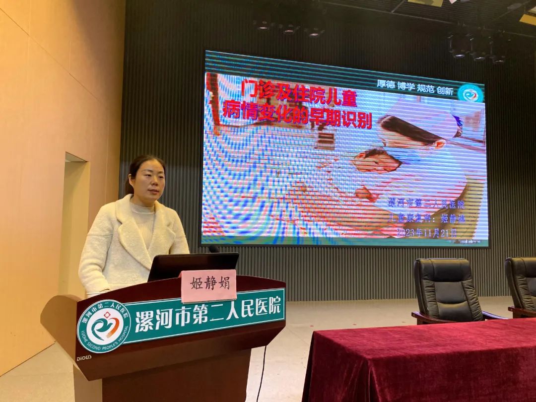 市二院兒童康復(fù)科護(hù)士長姬靜娟通過《門診及住院兒童病情變化的早期識別》,講述了兒童疾病早期識別與干預(yù)的重要性及兒童疾病管理與救治方面的相關(guān)知識。