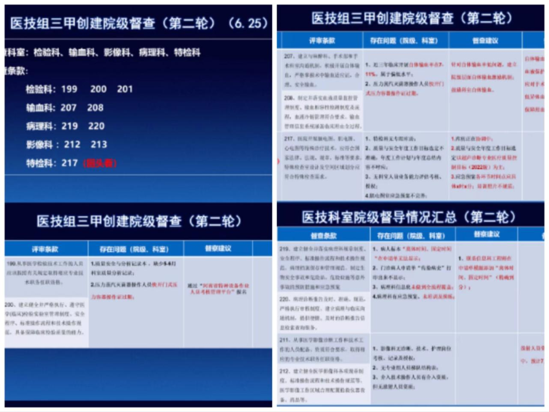 針對第一輪督查發(fā)現(xiàn)的問題,每個科室針對問題,積極完善。病理科在工作人員少、病理實驗室(院內(nèi)、學校實驗室)需要重新改造的情況下,科室人員在負責人趙路的帶領(lǐng)下,加班加點制作、完善三甲創(chuàng)建相關(guān)資料。 影像科在三位主任的帶領(lǐng)下,發(fā)揮全科、全員優(yōu)勢,每一項任務布置下去,責任到人,在規(guī)定時間內(nèi)按時完成。輸血科針對評審條款要求,結(jié)合輸血自身特點,完善、優(yōu)化輸血管理體系文件,特別是制作的輸血科儀器臺賬,定點、定時、定人,更好實現(xiàn)了實驗室儀器設備的管理、跟蹤,已作為儀器臺賬管理模版,在全院推廣使用。檢驗科針對評審條款、依據(jù)iso15189實驗室建設要求,與科室質(zhì)量與安全管理組成員 簽訂責任承諾書,形成“人人關(guān)注質(zhì)量安全,人人參與質(zhì)量安全”的良好氛圍。