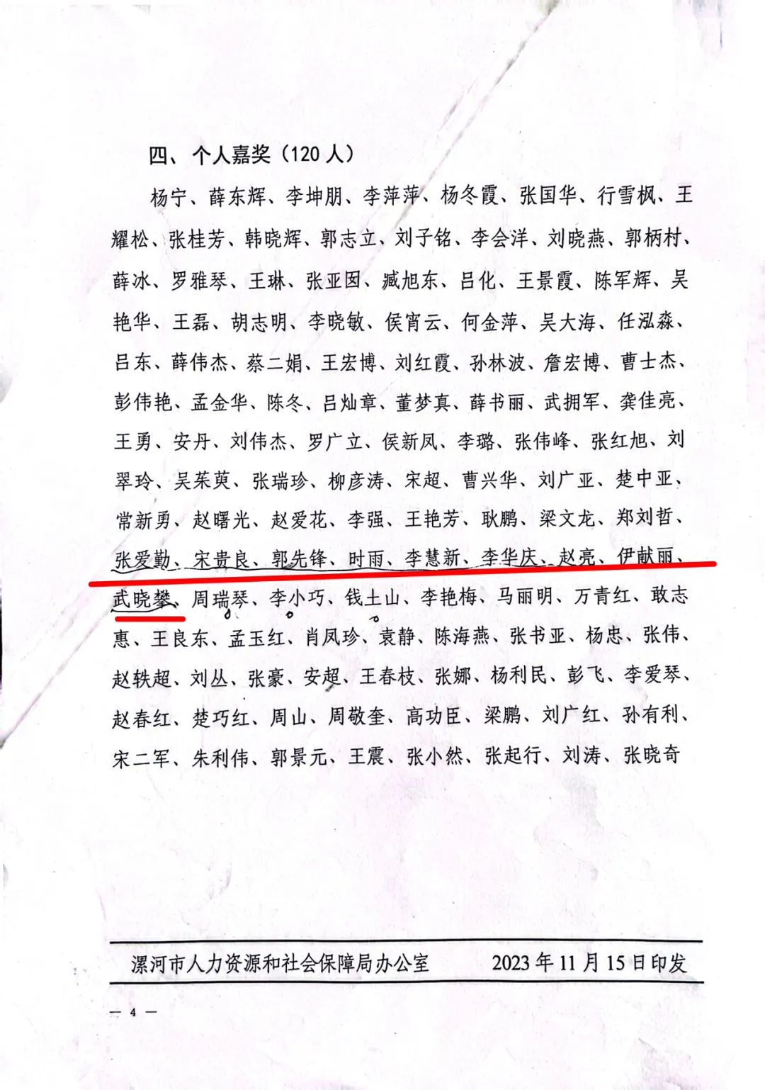 11月15日,漯河市人力資源和社會保障局對疫情防控新階段工作中表現(xiàn)突出的集體和個人進行表彰,市二院榮獲集體嘉獎獎勵。