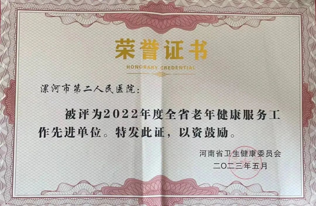 5月31日,河南省衛(wèi)生健康委發(fā)布關(guān)于表彰2022年度全省老齡工作和老齡健康工作先進單位、先進個人的通報,市二院榮獲“2022年度全省老年健康服務(wù)工作先進單位”殊榮。