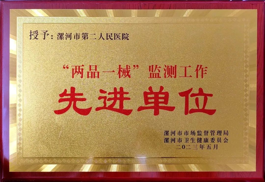 5月25日,市二院分別榮獲河南省2022年度“兩品一械”監(jiān)測工作先進單位、漯河市2022年度“兩品一械”監(jiān)測工作先進單位。
