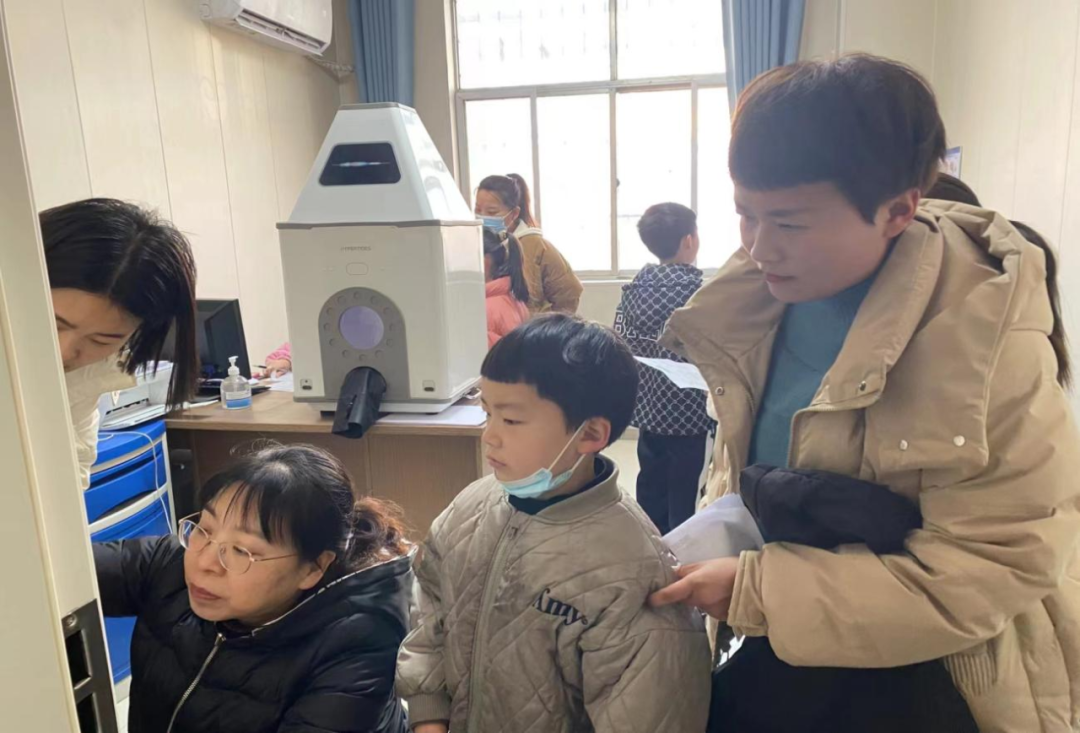 兒童保健科謝秀杰副主任醫(yī)師給兒童進(jìn)行身高、體重的篩查。