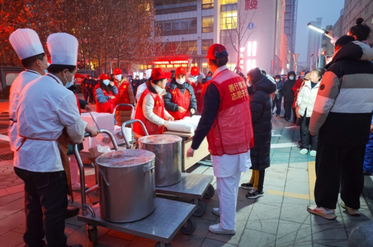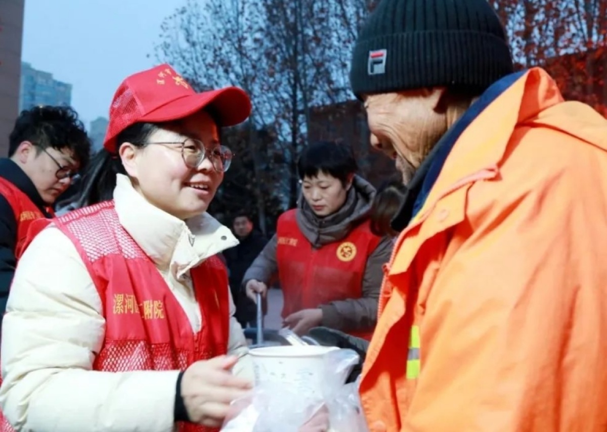 1000余碗臘八粥、600多個(gè)包子、10余斤咸菜......被悉數(shù)送出,前來(lái)領(lǐng)取愛心粥的不僅有患者及家屬,更有附近的環(huán)衛(wèi)工人和群眾。一碗碗愛心粥,不僅是暖手、暖胃,更是暖人、暖心。