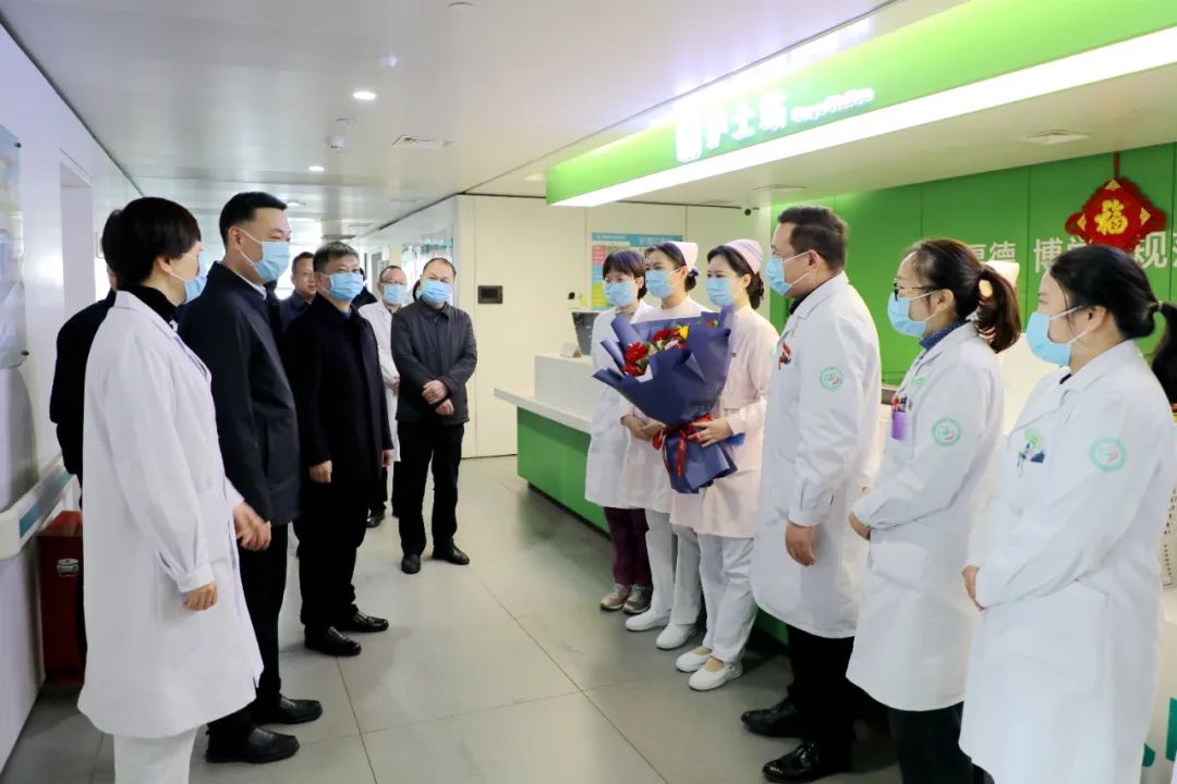 2月8日上午,新春佳節(jié)來(lái)臨之際,市衛(wèi)健委黨組成員、市紀(jì)委監(jiān)委派駐第二十一紀(jì)檢監(jiān)察組組長(zhǎng)朱黎明一行到市二院看望慰問一線醫(yī)護(hù)人員,并送上節(jié)日的問候。黨委書記魏松、院長(zhǎng)王瑾攜領(lǐng)導(dǎo)班子及相關(guān)職能部門負(fù)責(zé)人陪同慰問。