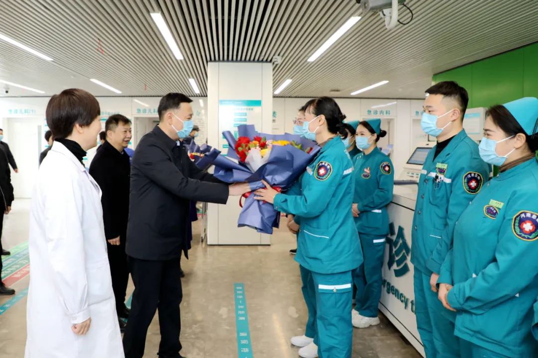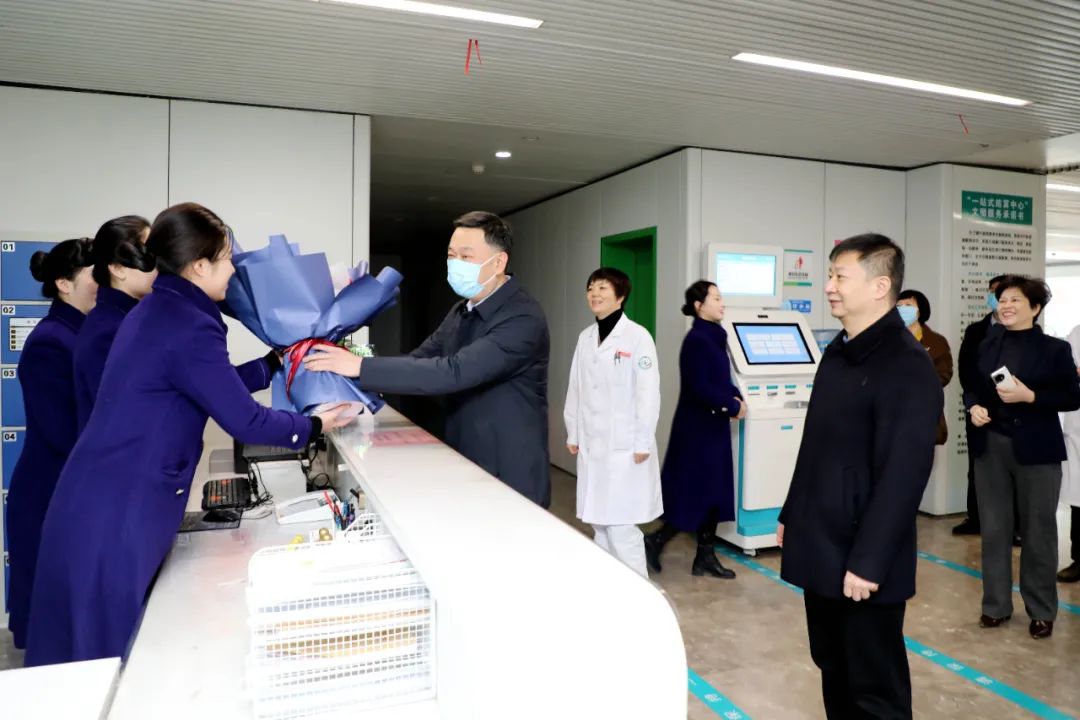 朱黎明一行先后到急診科、病人服務(wù)中心、影像科、皮膚科、中醫(yī)科、小兒心血管神經(jīng)血液科,小兒呼吸內(nèi)科看望慰問醫(yī)護(hù)人員,他表示,廣大醫(yī)護(hù)人員始終奮戰(zhàn)在醫(yī)療救治的最前線,承擔(dān)著光榮而艱巨的職責(zé)使命,為護(hù)佑全市人民健康提供了堅(jiān)實(shí)保障,在新春佳節(jié)到來(lái)之際,謹(jǐn)代表市衛(wèi)健委向辛勤奉獻(xiàn)的市二院全體醫(yī)護(hù)人員表達(dá)誠(chéng)摯的感謝和新年的祝福。