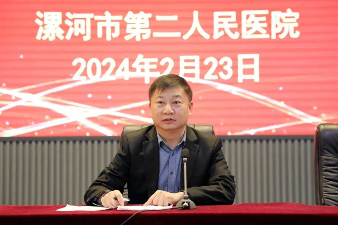 黨委書記魏松強調(diào),2023年,我們共同見證了醫(yī)院的成長與變革,共同創(chuàng)造了醫(yī)院的歷史與輝煌,這充分展現(xiàn)了全體二院人的責任與擔當。新的一年已經(jīng)到來,我們要從節(jié)日的喜慶氣氛中走出來,把時間和精力調(diào)整到工作中去,以更加飽滿的精神狀態(tài)投入到新一年的工作。我們要進一步統(tǒng)一思想,共同努力,樹立“單項工作爭第一,整體工作創(chuàng)先進”的決心,發(fā)揚“跳起來摘桃子、跳起來當標桿”的爭先意識和“不折不扣抓落實、敢做善為抓落實”的實干精神,為醫(yī)院高質(zhì)量發(fā)展、為漯河“三城”建設(shè)做出積極的貢獻!