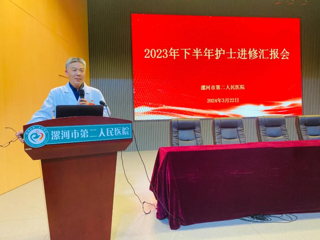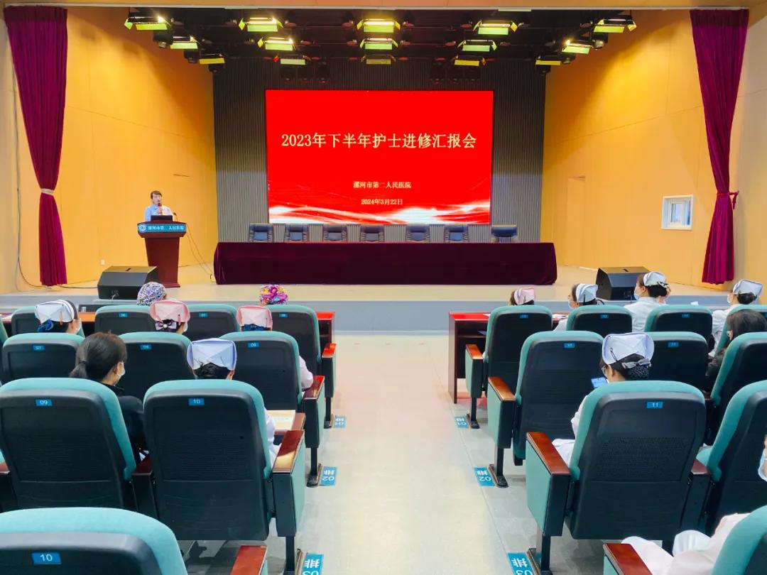 為進(jìn)一步激發(fā)護(hù)理人員學(xué)習(xí)工作積極性,分享學(xué)習(xí)經(jīng)驗,展示工作成效,有效推動護(hù)理專科發(fā)展,3月22日,市二院在十二樓學(xué)術(shù)報告廳舉辦了2023年下半年護(hù)士進(jìn)修匯報會。副院長郭長根出席、各科室護(hù)士長、不值班護(hù)士約150人參加了會議。