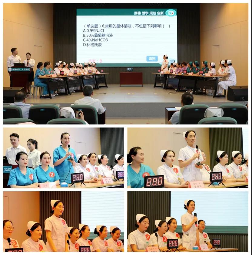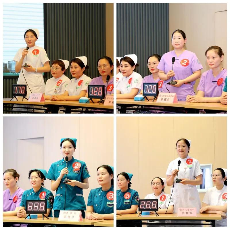 此次競賽內(nèi)容涵蓋基礎(chǔ)護理、專科護理、護理團體標準、核心制度、應(yīng)急預案等專業(yè)知識,分為初賽和決賽。此次活動,共有25個護理單元75名選手參加,經(jīng)過前期的層層選拔,8支代表隊24名選手參加了決賽。比賽現(xiàn)場氣氛火熱,高潮迭起,必答題環(huán)節(jié)各隊選手平分秋色,比分不相上下,隨著搶答環(huán)節(jié)的到來,比賽進入白熱化狀態(tài),各隊選手快速思考,競相搶答,上演了一場精彩紛呈的腦力與速度的較量;在風險題環(huán)節(jié),各隊選手不甘落后,幾乎是在題目出現(xiàn)的瞬間就已經(jīng)有人按下了搶答器并給出準確的答案,體現(xiàn)他們扎實的理論知識和深厚的實踐功底。