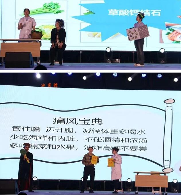 現(xiàn)場醫(yī)護人員展示的《與“食”俱進 “石”不再來》《燃燒我的卡路里》《過量飲酒 “肝”敗下風(fēng)》《惹不起的痛風(fēng)君》《當(dāng)胸痛來臨時》《美麗的陷阱》等作品,形式新穎,采用情景劇、順口溜、快板等生動活潑、詼諧有趣的表演方式,圍繞健康生活方式、營養(yǎng)健康知識、慢性病防治等主題,進行通俗易懂、生動形象地講解,贏得現(xiàn)場評委和線上線下觀眾一致好評。