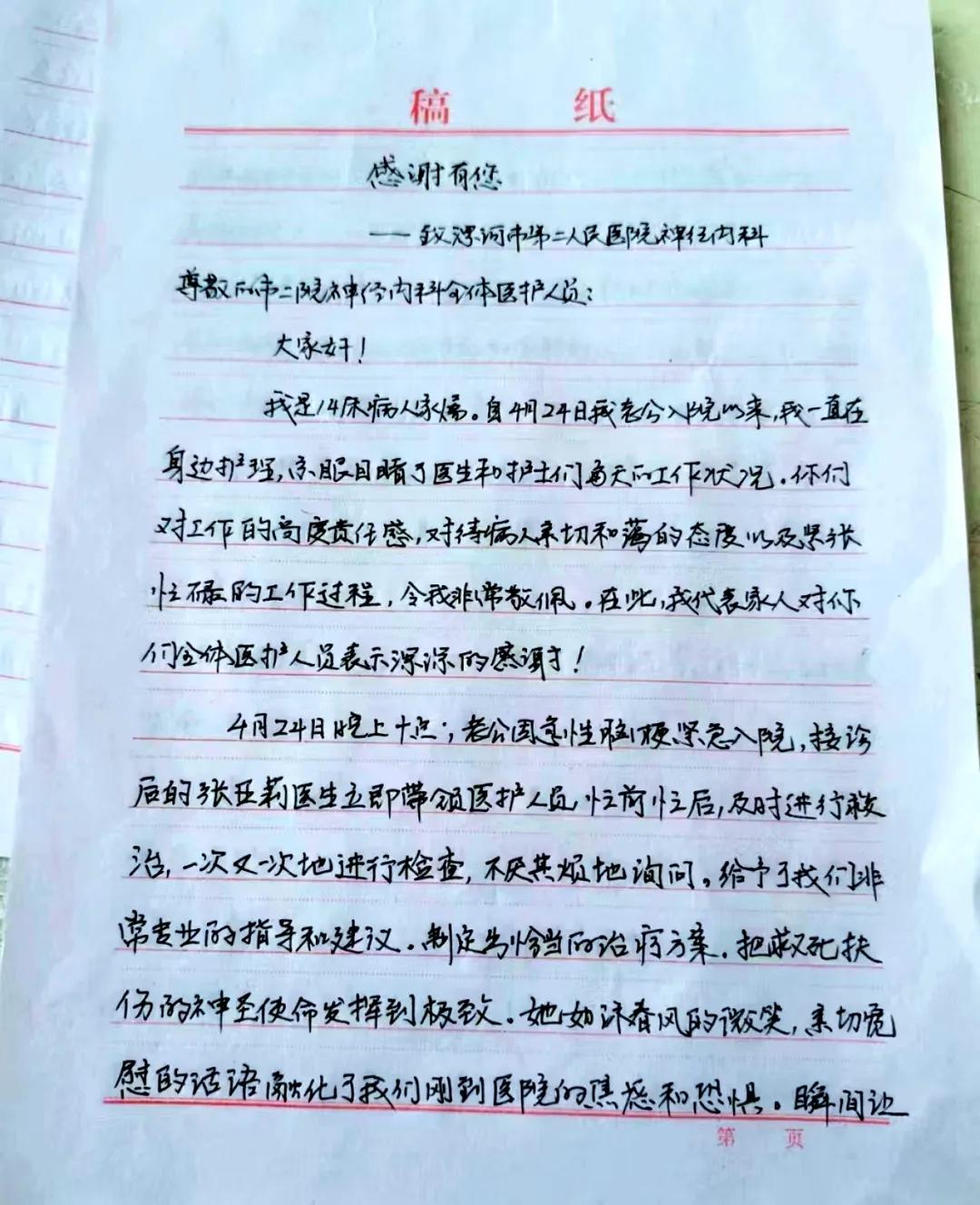 近日,市二院神經(jīng)內(nèi)科連續(xù)收到患者送來的感謝信,字里行間處處表達(dá)著對醫(yī)護(hù)人員的感激,對醫(yī)院診療技術(shù)、優(yōu)質(zhì)護(hù)理的贊揚(yáng)和認(rèn)可,傳遞著和諧、溫馨的醫(yī)患真情!