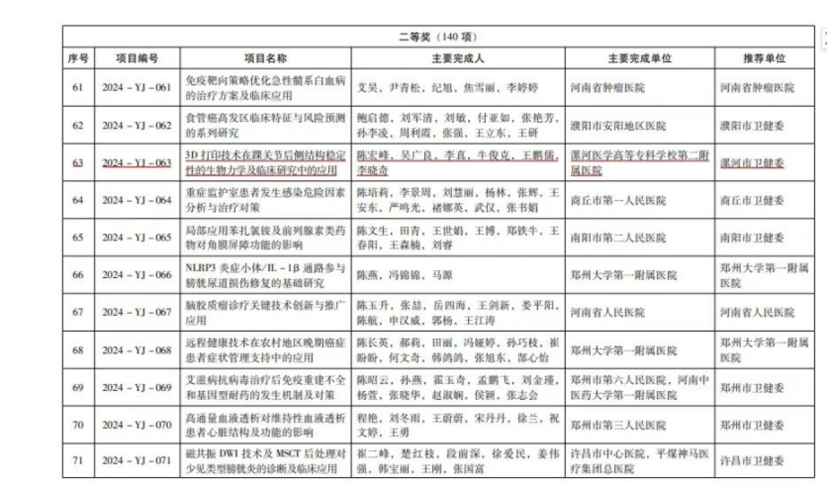 2024年度河南醫(yī)學(xué)科技獎(jiǎng)"出爐",漯河市骨科醫(yī)院"中獎(jiǎng)"三個(gè)項(xiàng)目!