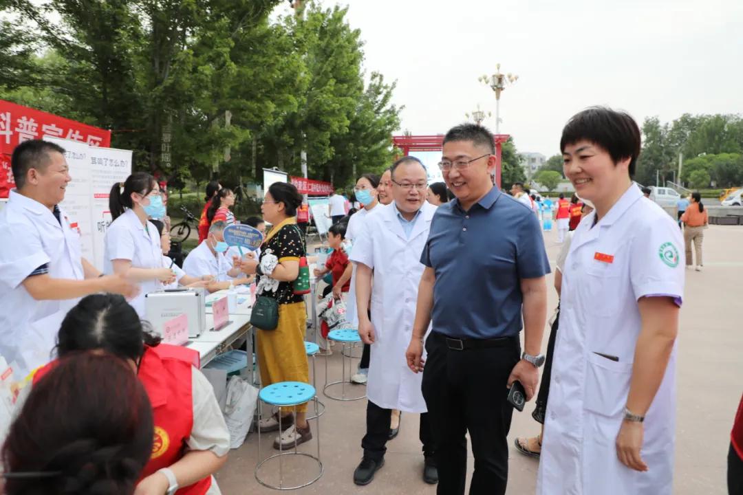 5月31日晚7時(shí),根據(jù)市衛(wèi)健委統(tǒng)一部署,市二院在紅楓廣場開展了“漯河市衛(wèi)生健康青年人才發(fā)展聯(lián)盟大型義診活動(dòng)”,在炎炎夏日為廣大市民送去陣陣清涼。市衛(wèi)健委黨組副書記、副主任王向良帶領(lǐng)市衛(wèi)健委人事科科長王滿華、醫(yī)政科長王彩紅等蒞臨現(xiàn)場并給予指導(dǎo)。