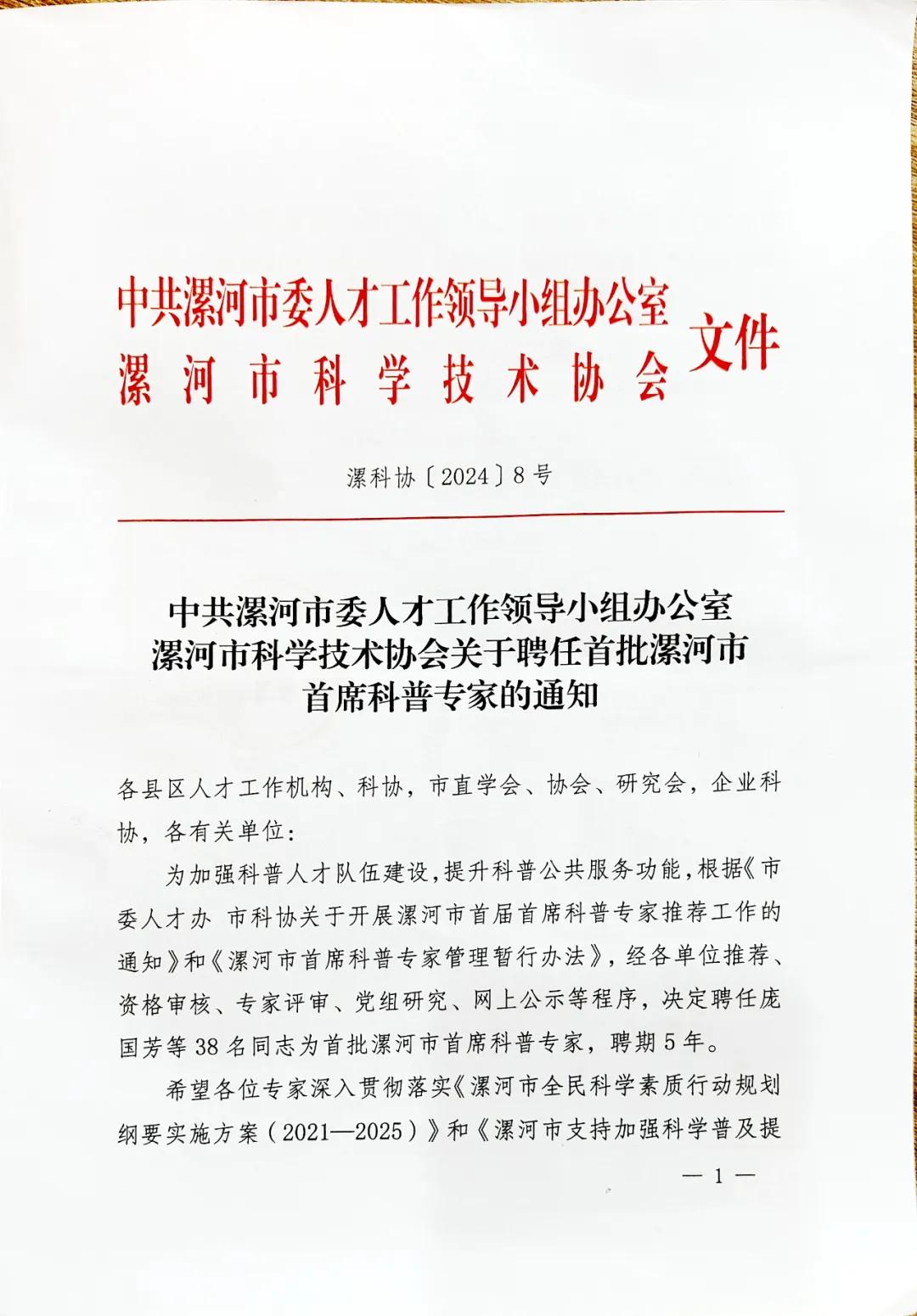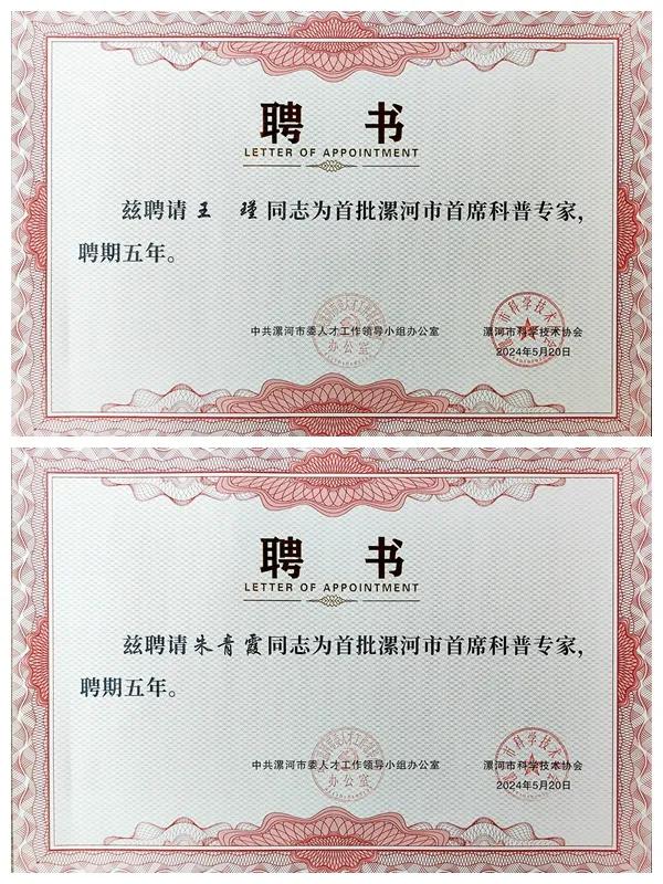 現(xiàn)場,公布了首批聘任的38名漯河市首席科普專家名單,市二院院長、心血管內(nèi)科主任醫(yī)師王瑾與中醫(yī)科主任、主任醫(yī)師朱青霞,被聘為漯河市首批首席科普專家。