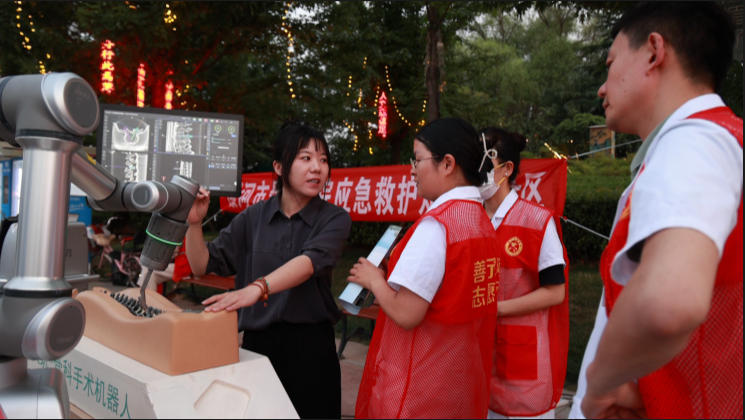 除了提供義診服務外,醫(yī)療專家志愿者們還進行了“天璣Ⅱ”骨科機器人展示,向市民介紹了該機器人在數(shù)字智能醫(yī)療領(lǐng)域的應用、技術(shù)特點、臨床優(yōu)勢以及實際案例等方面內(nèi)容,將優(yōu)質(zhì)的醫(yī)療資源和先進的醫(yī)療技術(shù)帶到基層老百姓身邊。