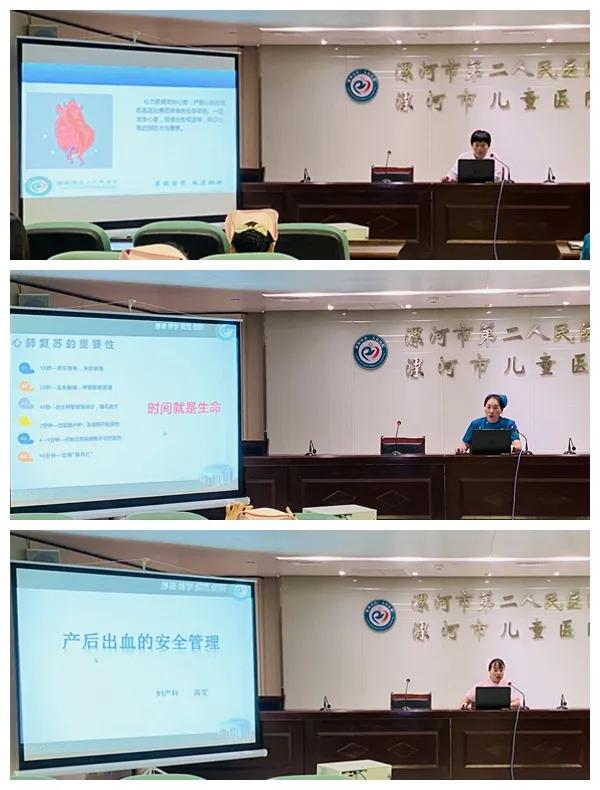此次培訓分為理論知識講授和應急操作技能培訓兩部分。心衰中心副主任醫(yī)師張偉燕對心衰病人的全周期健康管理進行了專業(yè)的講解。婦產(chǎn)科??谱o士張亞南對產(chǎn)后出血的早期診斷、出血量評估方法、處理、用藥等產(chǎn)后出血安全管理指南進行了深入的解讀。急診科護士長莫敬敬對成人及兒童高質(zhì)量心肺復蘇的標準以及AED的工作原理和操作流程進行了詳細地講解。整個理論培訓內(nèi)容豐富,專業(yè)性及指導性極強。