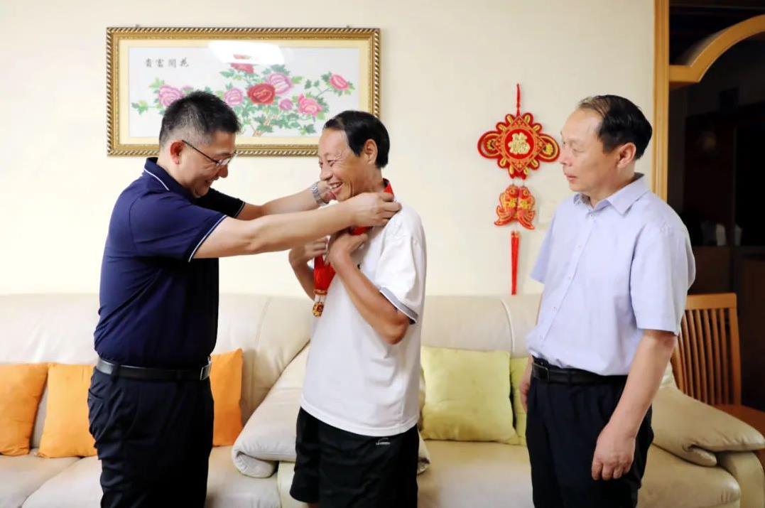 慰問過程中,王向良同志為謝學政同志戴上沉甸甸的紀念章,關切詢問謝學政同志及其家人的生活和身體狀況。孟德陽同志受院黨委的委托,向謝學政同志為醫(yī)院的發(fā)展所做出的辛勤付出、無私奉獻表達了衷心感謝,叮囑他保重身體,今后有什么困難要及時告知醫(yī)院,醫(yī)院是他永遠的后盾,并希望他一如既往地關心醫(yī)院工作,為醫(yī)院高質量發(fā)展積極建言獻策。
