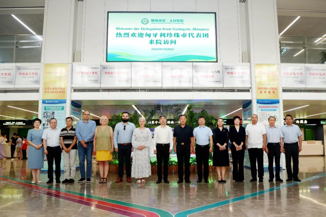朋自遠(yuǎn)方來(lái),攜手話合作。7月26日,漯河市友好城市——匈牙利珍珠市議會(huì)主席嘉柏瑞拉·森、聯(lián)絡(luò)處主任托馬斯·皮??啤?guó)際關(guān)系處主任拉斯洛·恰爾達(dá)斯、杜比茨酒莊總經(jīng)理喬治·杜奈組成的珍珠市代表團(tuán),蒞臨漯河市第二人民醫(yī)院,交流醫(yī)療合作事宜。匈牙利河南總商會(huì)會(huì)長(zhǎng)白勇、副會(huì)長(zhǎng)應(yīng)建輝,市衛(wèi)健委黨組書記、主任宋耀生,市委外辦副主任楊興濤,市衛(wèi)健委醫(yī)政科長(zhǎng)王彩紅參加活動(dòng),市二院黨委書記魏松、院長(zhǎng)王瑾攜班子成員及相關(guān)職能部門負(fù)責(zé)同志全程陪同。