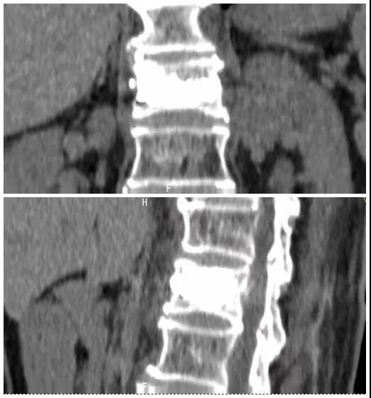 術(shù)前磁共振檢查提示腰1椎體新鮮壓縮性骨折
