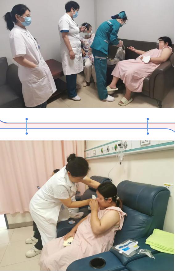 1分鐘后,婦產(chǎn)科張秀麗醫(yī)生迅速來到檢驗科,2分鐘后,急診科的李想醫(yī)生、王靜護士推著平車,帶著急救設備也來到檢驗科。他們爭分奪秒,分工合作,婦產(chǎn)科醫(yī)生查看孕婦及胎兒基本情況,急診科醫(yī)生、護士立即測量手指血糖、血壓等操作。隨后,大家快速的把患者轉(zhuǎn)移到婦產(chǎn)科門診胎心監(jiān)護室,立即進行吸氧、胎心監(jiān)護等操作。