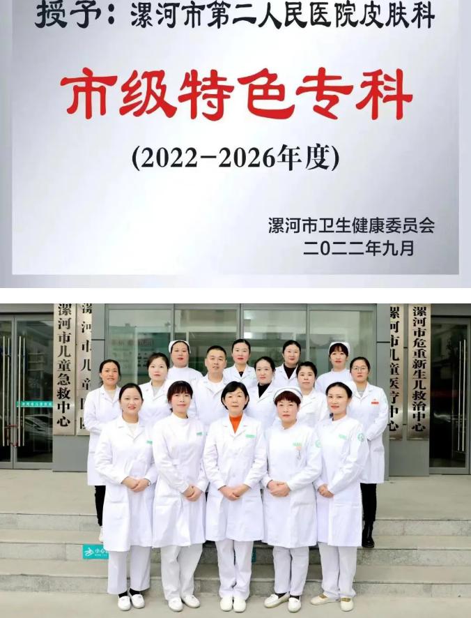 皮膚科經(jīng)過40多年的發(fā)展,目前為漯河市規(guī)模較大、技術(shù)力量雄厚的市級(jí)特色???,2020年掛牌“漯河市皮膚病醫(yī)院”,是中國(guó)醫(yī)學(xué)科學(xué)院、北京協(xié)和醫(yī)院皮膚病研究所、中南大學(xué)湘雅醫(yī)院、河南省人民醫(yī)院、河南省中醫(yī)藥大學(xué)第一附屬醫(yī)院等皮膚專科聯(lián)盟單位。先后榮獲河南省青年文明號(hào)、漯河市青年文明號(hào)等榮譽(yù)稱號(hào)。