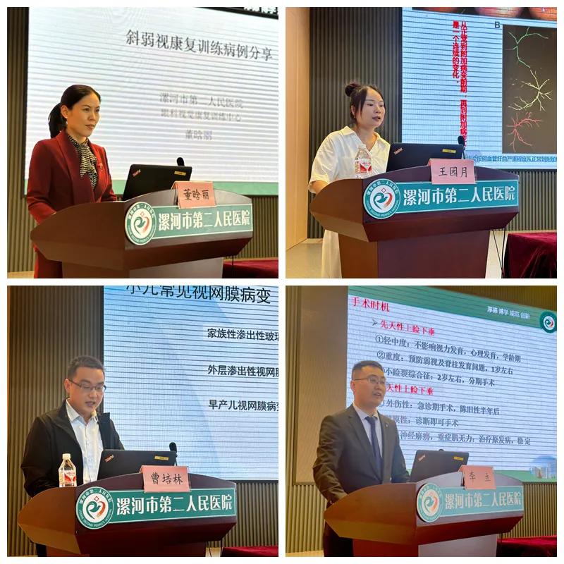 市二院董晗麗視覺(jué)視訓(xùn)師就《斜弱視康復(fù)訓(xùn)練病例分享》進(jìn)行了交流;市中心醫(yī)院王園月醫(yī)生對(duì)《早產(chǎn)兒視網(wǎng)膜病變的規(guī)范化診療及隨訪》進(jìn)行了解讀;市醫(yī)專二附醫(yī)院曹培林醫(yī)生分享了《小兒常見(jiàn)視網(wǎng)膜相關(guān)病變的診治經(jīng)驗(yàn)》;市二院眼科主任李立分享了《上瞼下垂的診斷及治療》。