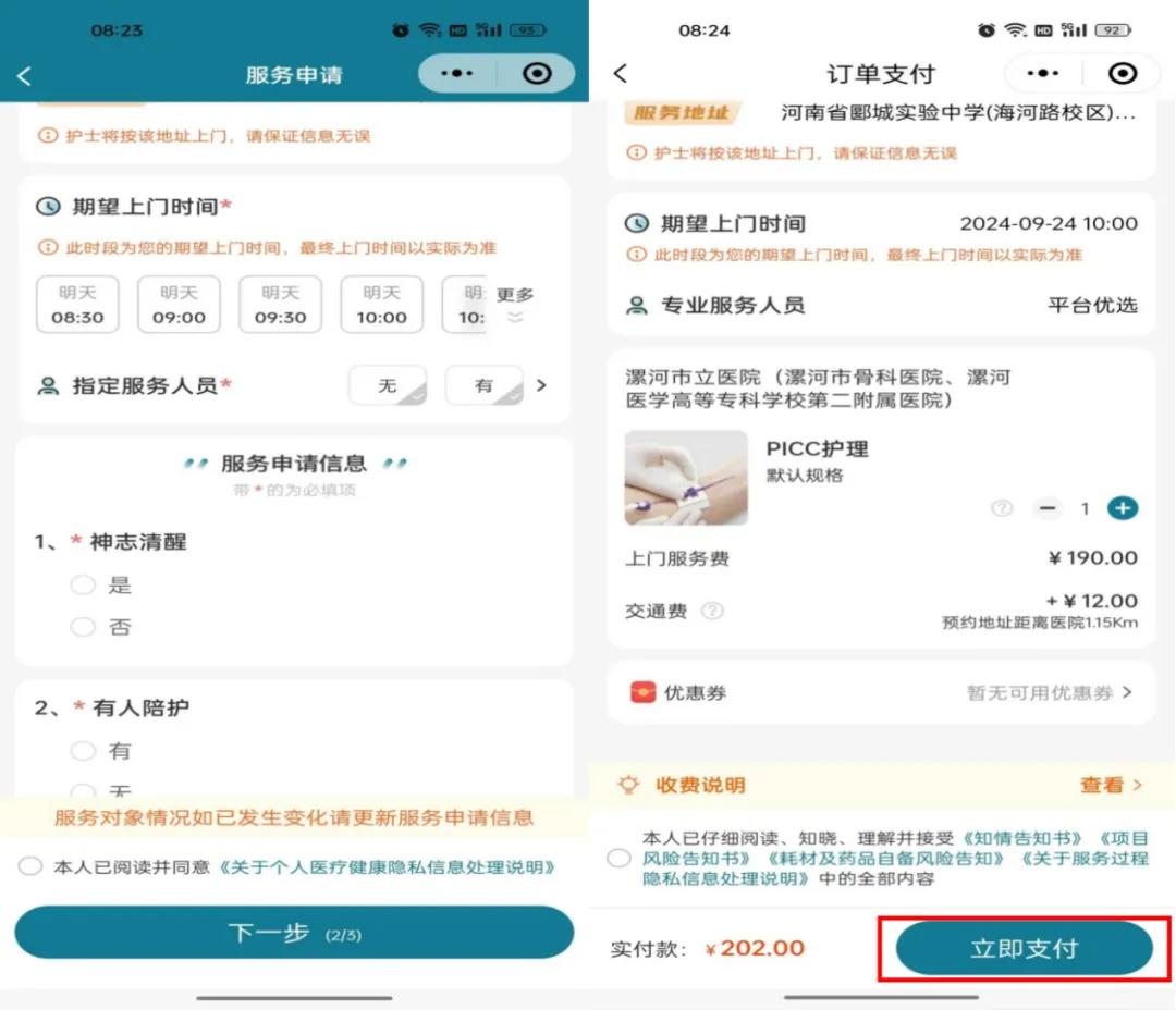 4.各項(xiàng)信息填寫(xiě)后,支付訂單,護(hù)士接單后會(huì)與下單人電話聯(lián)系再次確認(rèn)。