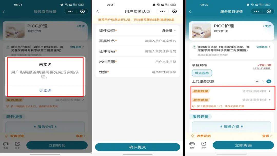 3.購(gòu)買之后需實(shí)名認(rèn)證,請(qǐng)正確填寫(xiě)各項(xiàng)信息,服務(wù)對(duì)象填寫(xiě)的是需要被護(hù)理的患者,地址填寫(xiě)準(zhǔn)確。
