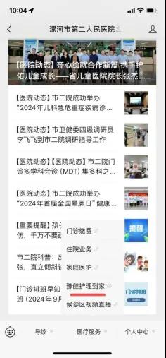 2.可以關(guān)注漯河市第二人民醫(yī)院微信公眾號,進入公眾號頁面。