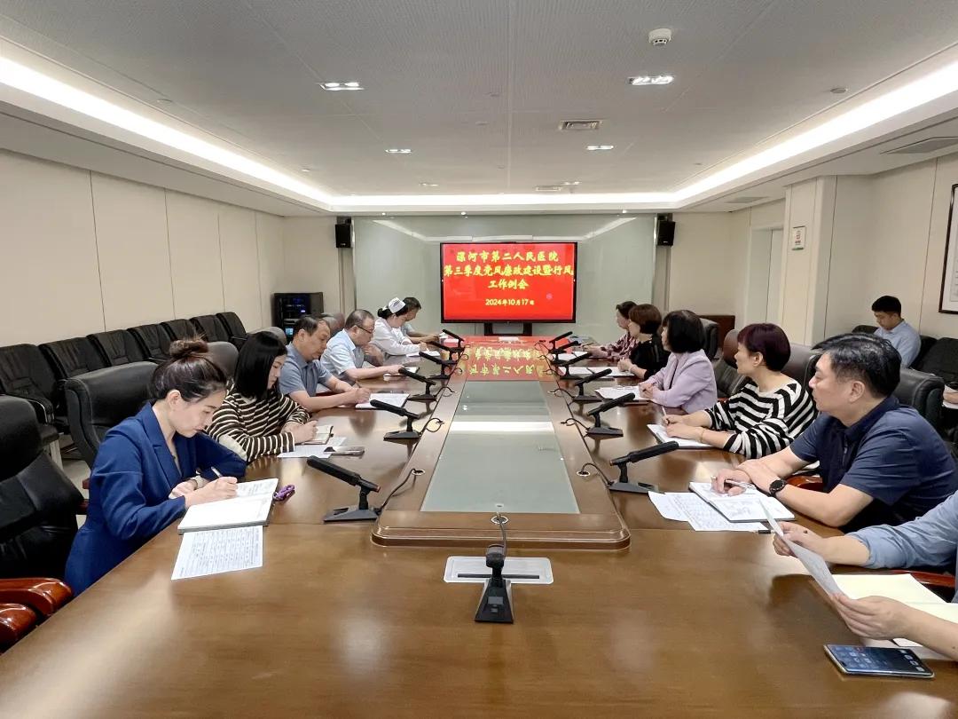 10月17日下午,市二院組織召開2024年第三季度黨風廉政建設(shè)暨行風工作例會。會議由紀委書記孟德陽主持,副院長張曉東及各職能科長參加會議。