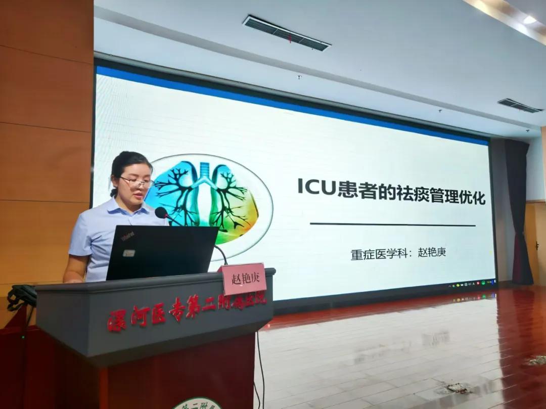 漯河市骨科醫(yī)院重癥醫(yī)學(xué)科護(hù)士長(zhǎng)趙艷庚以《ICU患者的祛痰管理優(yōu)化》為課題。為大家詳細(xì)講解了ICU患者祛痰管理的重要性,痰液的產(chǎn)生機(jī)制、影響因素及祛痰管理實(shí)施辦法,引發(fā)對(duì)重癥肺炎患者呼吸道管理的更廣泛關(guān)注和重視,激勵(lì)醫(yī)護(hù)人員不斷學(xué)習(xí)和更新知識(shí),提升專業(yè)技能,為患者提供更好的醫(yī)療服務(wù)。