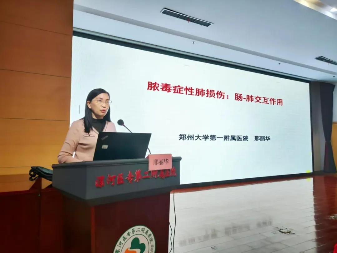 本次會(huì)議邀請(qǐng)鄭州大學(xué)第一附屬醫(yī)院重癥醫(yī)學(xué)部副主任、RICU主任邢麗華教授為大家講授了《膿毒癥性肺損傷:腸-肺交互作用》,邢教授以深入淺出、幽默詼諧的授課方式,講述了病原微生物在人體內(nèi)的來(lái)龍去脈,讓我們深刻認(rèn)識(shí)到肺部感染不僅需要上呼吸道管理,更需要腸道管理,為與會(huì)者帶來(lái)了全新的視角和思路。