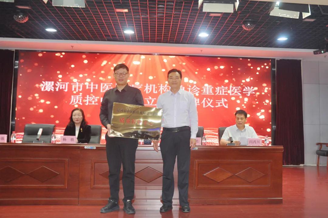 漯河市衛(wèi)健委四級調研員黃紅亮宣讀《關于變更市級中醫(yī)醫(yī)療機構急診重癥醫(yī)學質量控制中心主任、副主任、專職秘書名單的通知》并現場授牌。