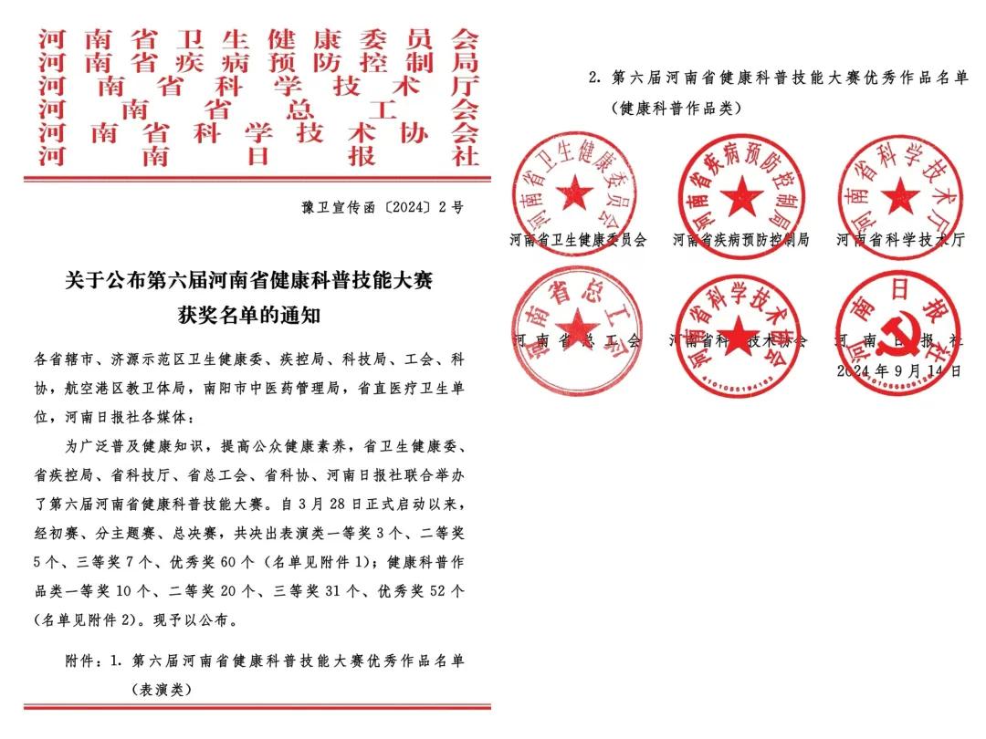 第六屆河南省健康科普技能大賽,漯河市中醫(yī)院包亞沖斬獲多項榮譽(yù)