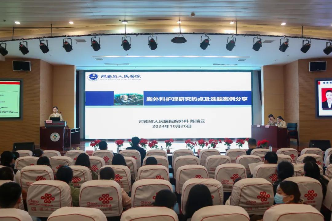 會議內(nèi)容豐富多彩,涵蓋了胸外科護理的多個熱點話題和前沿技術。河南省人民醫(yī)院胸外科一病區(qū)護士長陳瑞云以其深厚的學術功底和豐富的實踐經(jīng)驗,為大家?guī)砹恕缎赝饪谱o理研究熱點分析及選題案例分享》。她通過生動的案例,深入剖析了當前胸外科護理領域的研究熱點,為參會者提供了寶貴的選題思路和研究方向。