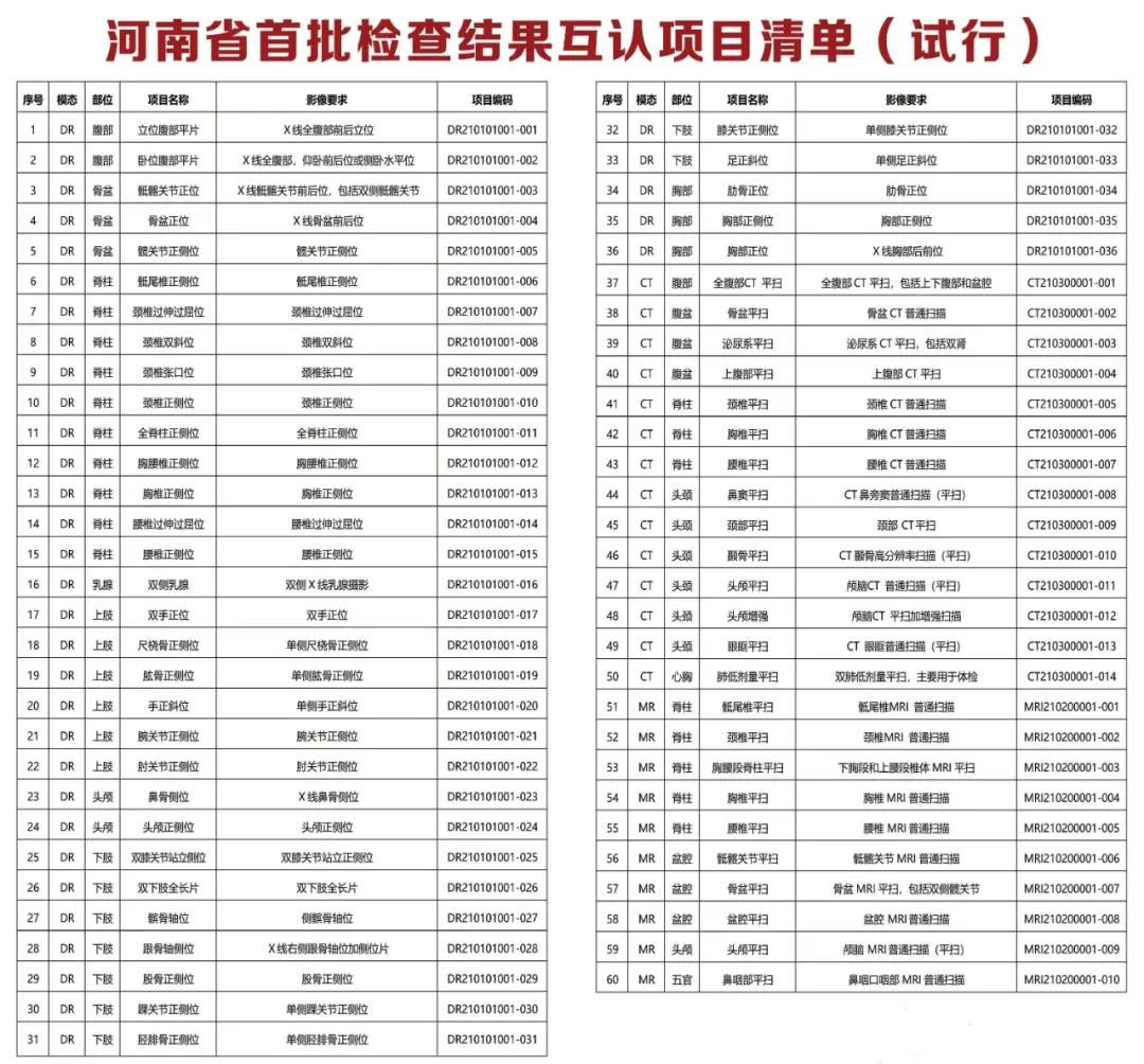3.全省各醫(yī)聯(lián)體成員單位間和有對(duì)口支援關(guān)系的醫(yī)療機(jī)構(gòu)間,屬互認(rèn)項(xiàng)目的檢查檢驗(yàn)結(jié)果,應(yīng)互相認(rèn)可。