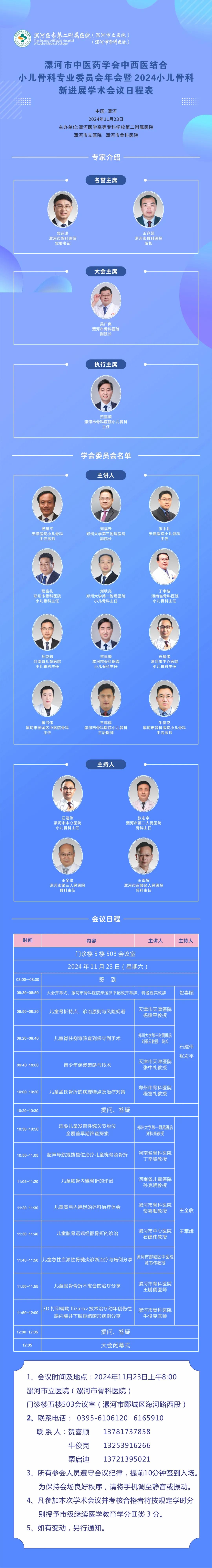 11月23日 漯河市中醫(yī)藥學(xué)會(huì)中西醫(yī)結(jié)合小兒骨科專業(yè)委員會(huì)年會(huì)暨2024小兒骨科新進(jìn)展學(xué)術(shù)會(huì)議