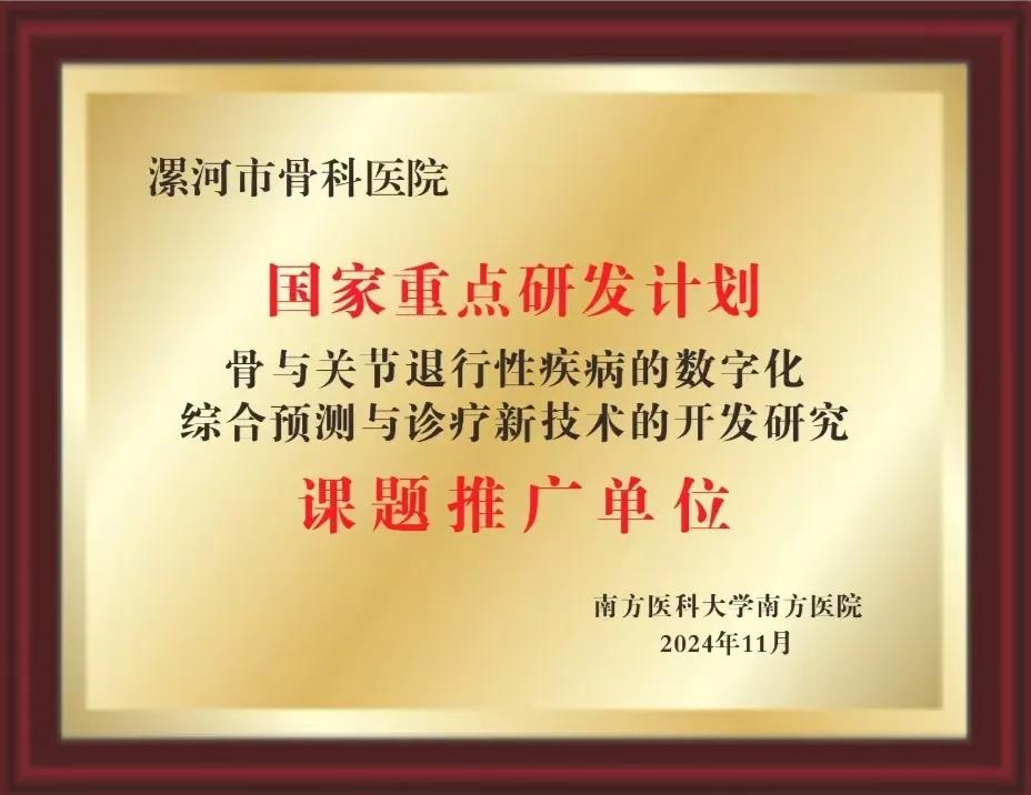 通過與國內頂尖醫(yī)療機構的緊密合作,漯河市骨科醫(yī)院(漯河醫(yī)專二附院、漯河市立醫(yī)院)將繼續(xù)深化在骨關節(jié)退行性疾病領域的研究與實踐,并以此為契機,推動全科醫(yī)療技術的創(chuàng)新與進步。同時,醫(yī)院也將致力于培養(yǎng)更多高水平專業(yè)人才,加強與國際國內先進醫(yī)療理念的交流,致力于將我院打造成為管理科學、技術精湛、服務優(yōu)良、群眾滿意、政府放心的高質量醫(yī)院,切實為人民群眾的健康福祉貢獻力量。(盧 闖 劉 旭 袁錦鈺)