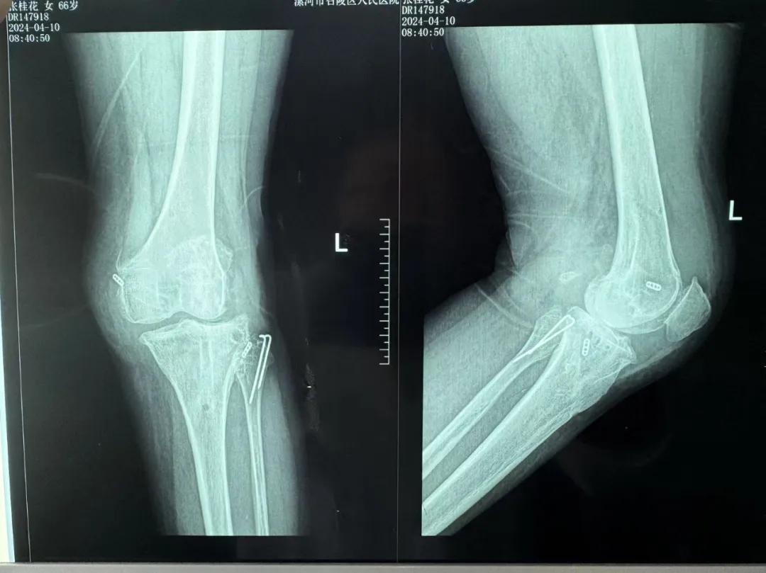 患者來(lái)院后,漯河市骨科醫(yī)院(漯河醫(yī)專(zhuān)二附院、漯河市立醫(yī)院)主治醫(yī)師康樂(lè)便成了她的管床醫(yī)生。在經(jīng)過(guò)詳細(xì)的術(shù)前診斷與檢查后,關(guān)節(jié)外科主任李付彬組織科室團(tuán)隊(duì)針對(duì)患者的診斷情況進(jìn)行術(shù)前討論——患者為重度膝關(guān)節(jié)骨關(guān)節(jié)炎,需進(jìn)行人工關(guān)節(jié)置換。但術(shù)前的評(píng)估結(jié)果顯示:患者膝關(guān)節(jié)側(cè)方不穩(wěn)定,單純行初次表面膝關(guān)節(jié)置換,術(shù)后仍會(huì)存在側(cè)方不穩(wěn)的情況,會(huì)影響術(shù)后效果以及假體使用年限,不僅無(wú)法完全恢復(fù)膝關(guān)節(jié)功能,還會(huì)加重患者的經(jīng)濟(jì)負(fù)擔(dān)。