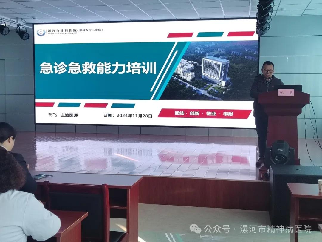 為提升漯河市精神病醫(yī)院急診急救處置能力,11月28日下午,由漯河市醫(yī)專二附院韓書環(huán)主任帶領(lǐng)宣講專家團(tuán)隊(duì),為該院專業(yè)技術(shù)人員進(jìn)行了急診急救相關(guān)知識及實(shí)操技能的培訓(xùn)。